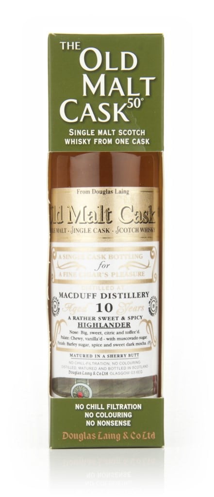 A 10 year old, sherry butt-matured single cask distilled at Macduff and bottled for Douglas Laing for its qualities as an accompaniment to a fine cigar.
