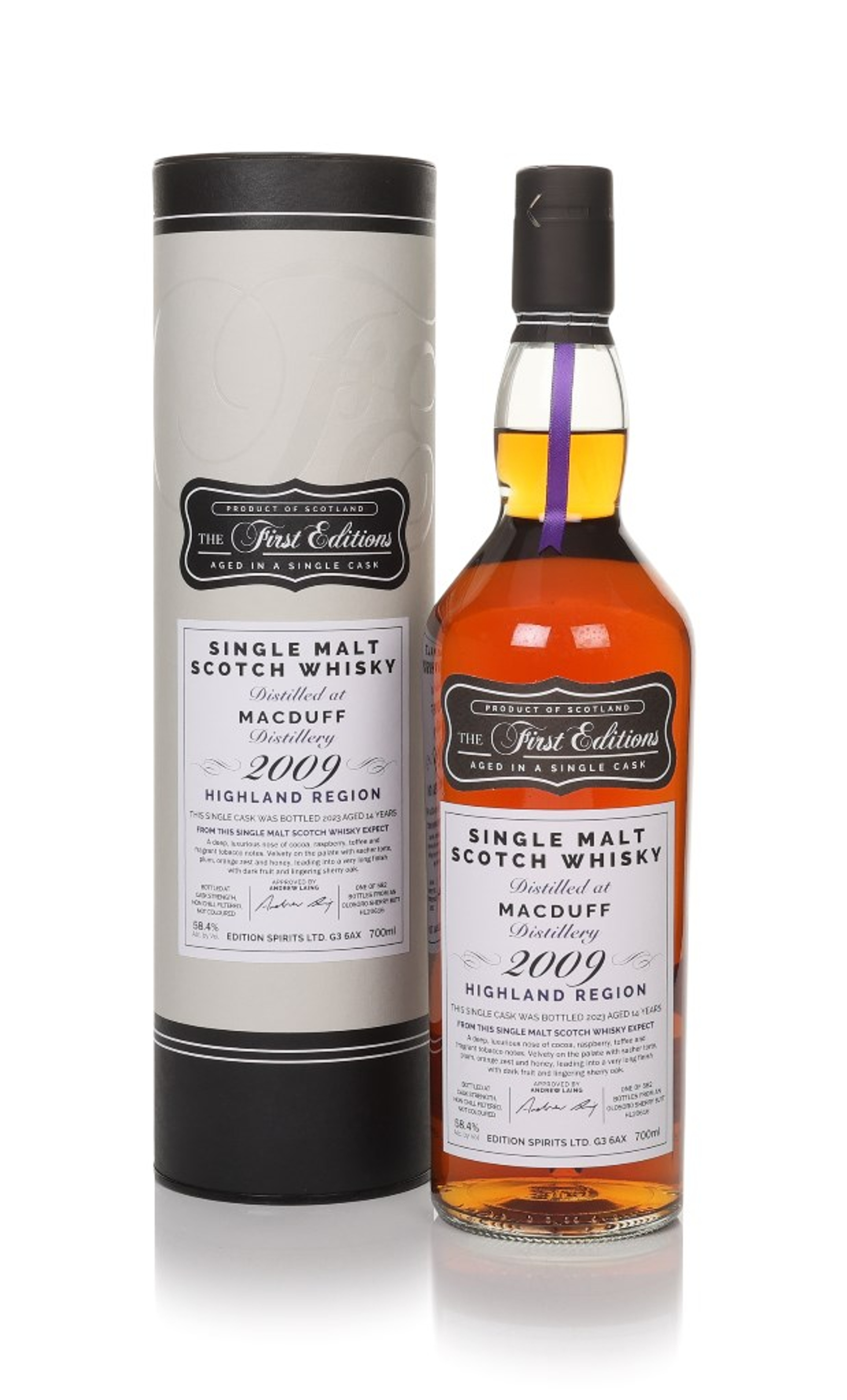 Hunter Laing went to the Highland region of Scotland to pick up this whisky for its The First Editions series. Macduff Distillery, to be precise, for an expression distilled back in 2009 and then matured for 14 years in a single oloroso sherry butt (cask #20616). It was filled into 582 bottles at 58.4% ABV at natural colour and with no chill-filtration.
