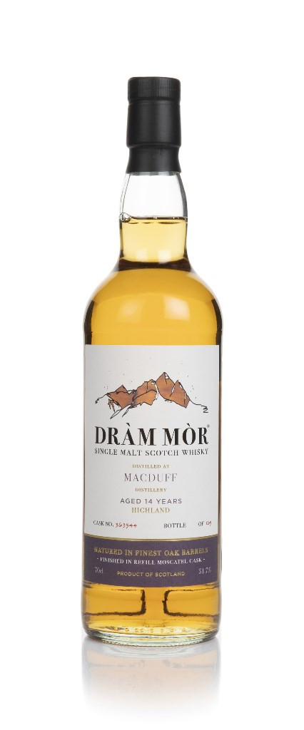 Here we've got a fabulous indie bottling of Macduff single malt Scotch whisky, matured for 14 years and given a finishing period in a refill Moscatel wine cask. Following that, it was bottled by Dràm Mòr at 51.7% ABV, with just 165 bottles produced. If you happen to be a fan of wine cask finished whiskies and Macduff, you'll be excited about this one.