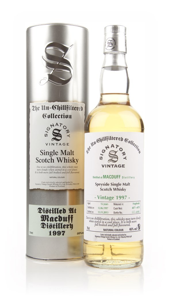 Distilled in June 1997 and bottled in November 2013, this Signatory-bottled Macduff single malt is a delicious expression of 16 year old whisky. It came from two consecutive casks (4077 & 4078) and was not chill-filtered before it was bottled, creating 692 bottles.