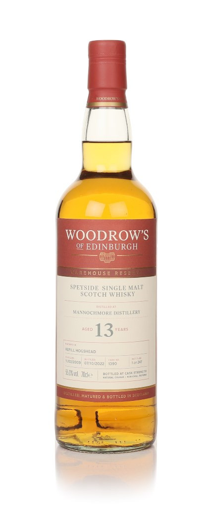 This single malt from Speyside's Mannochmore distillery spent 13 years maturing in a refill hogshead between February 2009 and October 2022. That cask was opened by Woodrow's of Edinburgh, independently releasing a total of 247 cask-strength bottles, without added colour or chill filtration.