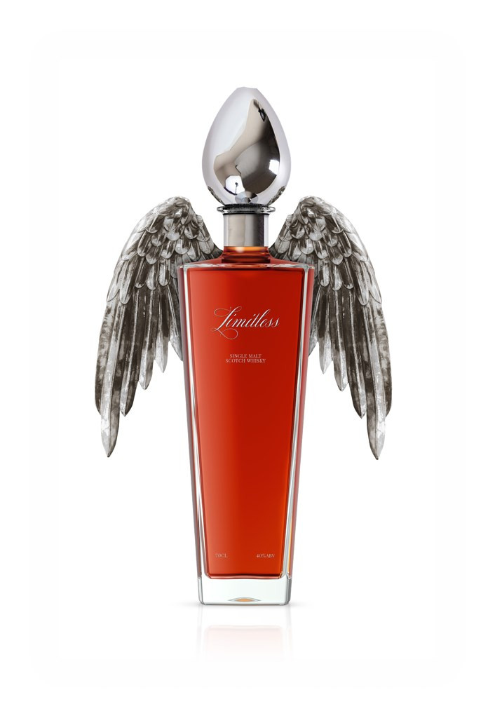 Some people say the sky is the limit. But what if the sky ceased to exist? Then there would be no limits. Luckily, you don't need to erase the sky in a catastrophic moment of foolhardy audaciousness to truly see a world without limit, as we have released Limitless, a majestic single malt Scotch whisky from our very own Master of Malt Luxury Trilogy. It's matured patiently in carefully selected American and European oak casks for at least three long years. We lovingly place the whisky in a decanter adorned with a sterling silver stopper and matching wings, which we believe is the only way this whisky could have been presented. Embrace the realm of infinite destinies.