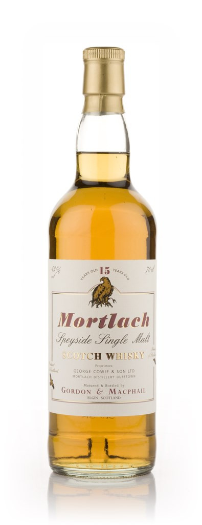 An old school bottle of 15-year-old single malt from Mortlach, aged in first fill and refill sherry casks before it was independently released by Gordon and MacPhail.