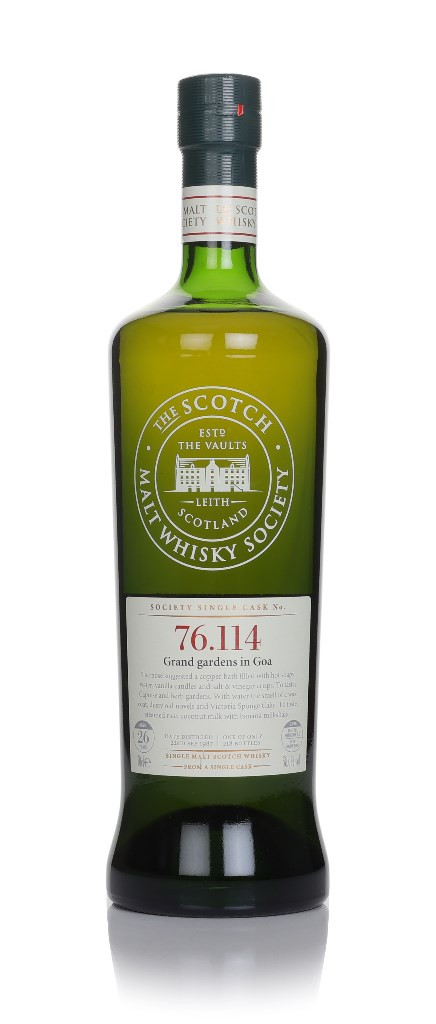 A meaty, muscular Mortlach distilled in 1987 and matured for 26 years in a refill bourbon hogshead, bottled at 58% ABV, exclusively for members of The Scotch Malt Whisky Society. A release of 218 bottles.