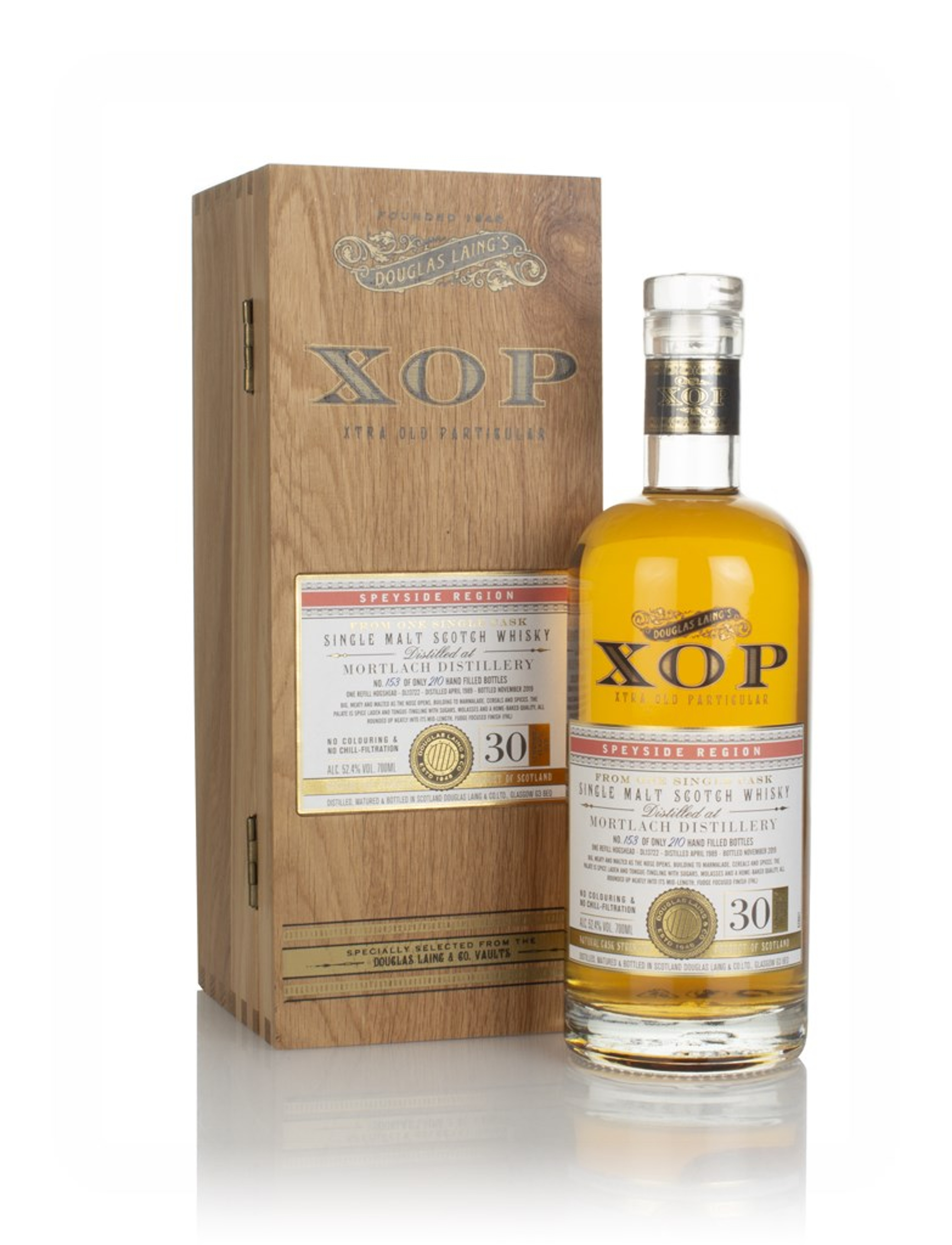 Well-matured Mortlach! This is yet another tasty treat from Douglas Laing's Xtra Old Particular range, reserved for rather special expressions. It was distilled in April 1989 and aged for 30 years in a refill hogshead, then bottled in November 2019. Just 210 bottles were released.