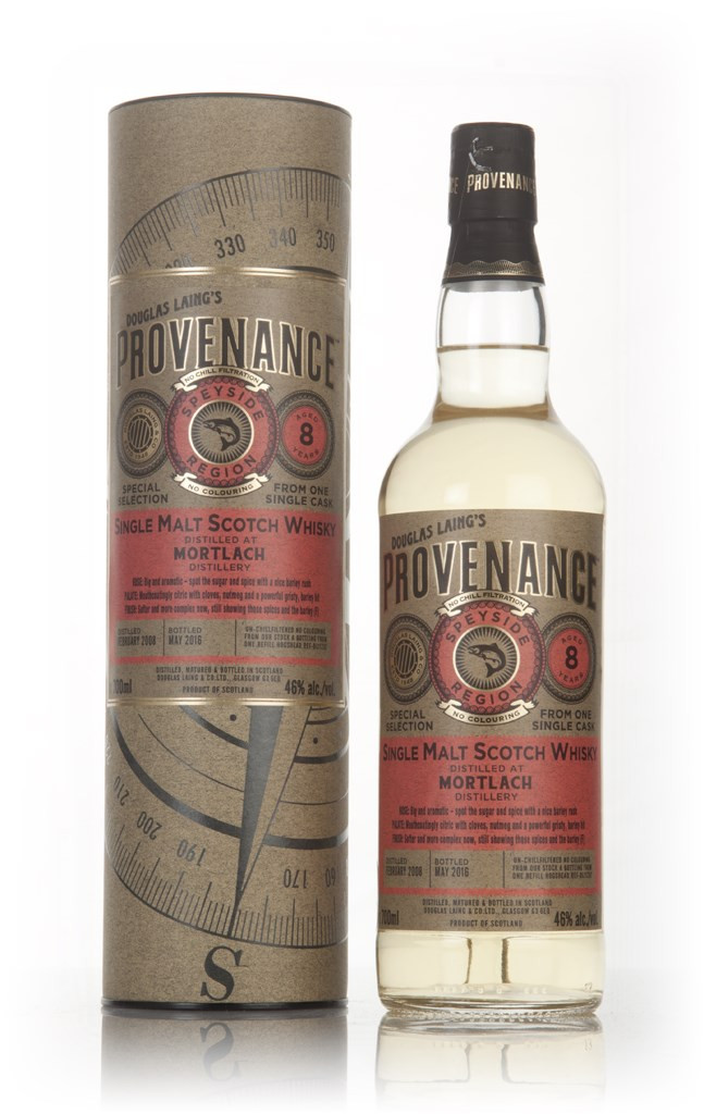A single cask bottling of 8 year old Mortlach, distilled in February 2008 and bottled in May 2016. It was aged in a refill hogshead until Douglas Laing came along and bottled it for the Provenance range with an outturn of 434 bottles.