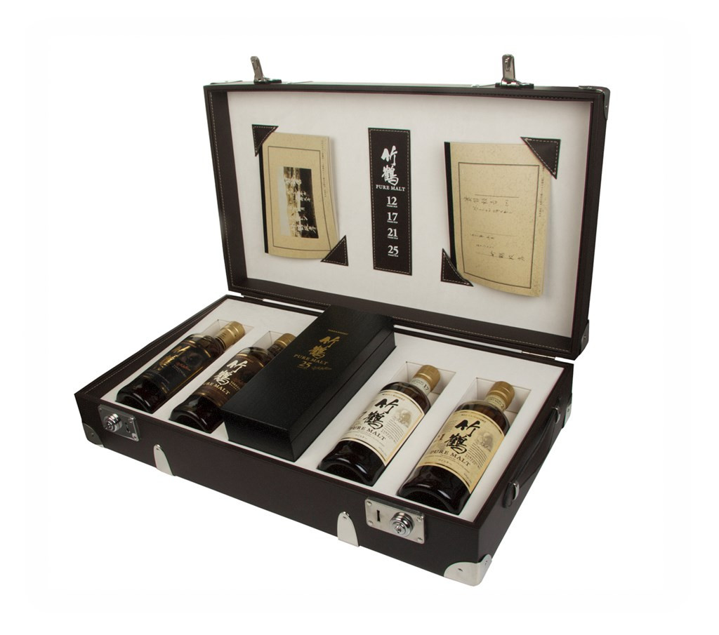 An incredibly handsome set from Nikka, honouring the company's celebrated founder, Masataka Taketsuru. This suitcase contains five different 70cl bottles of Nikka Taketsuru Pure Malt Japanese whiskies, as well as two replications of Taketsuru's handwritten notebooks! The whiskies included in this very collectible set are...
