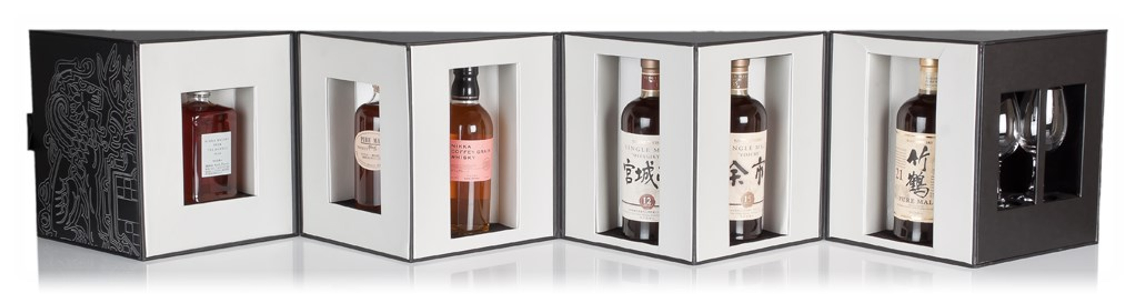 You'll also find two Nikka branded Glencairn glasses, perfect for enjoying any of these delicious expressions. The gift box has been inspired by the art of origami and can be arranged in a number of different ways to display the whiskies. This is just flat-out awesome.