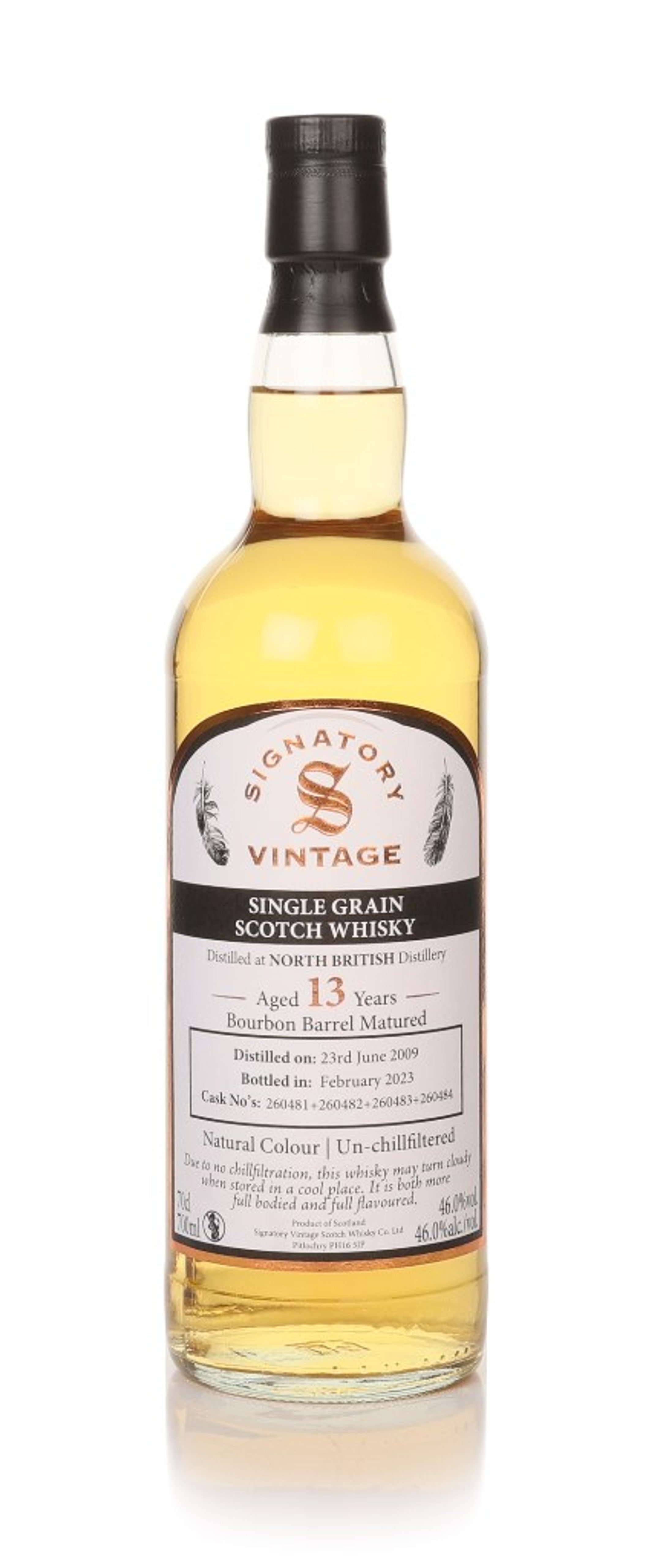Distilled in June 2009 and matured for 13 years in a host of bourbon barrels, this single grain Scotch from the North British distillery joins the collection from independent bottler Signatory. Bottled without added colour or chill filtration in February 2023.
