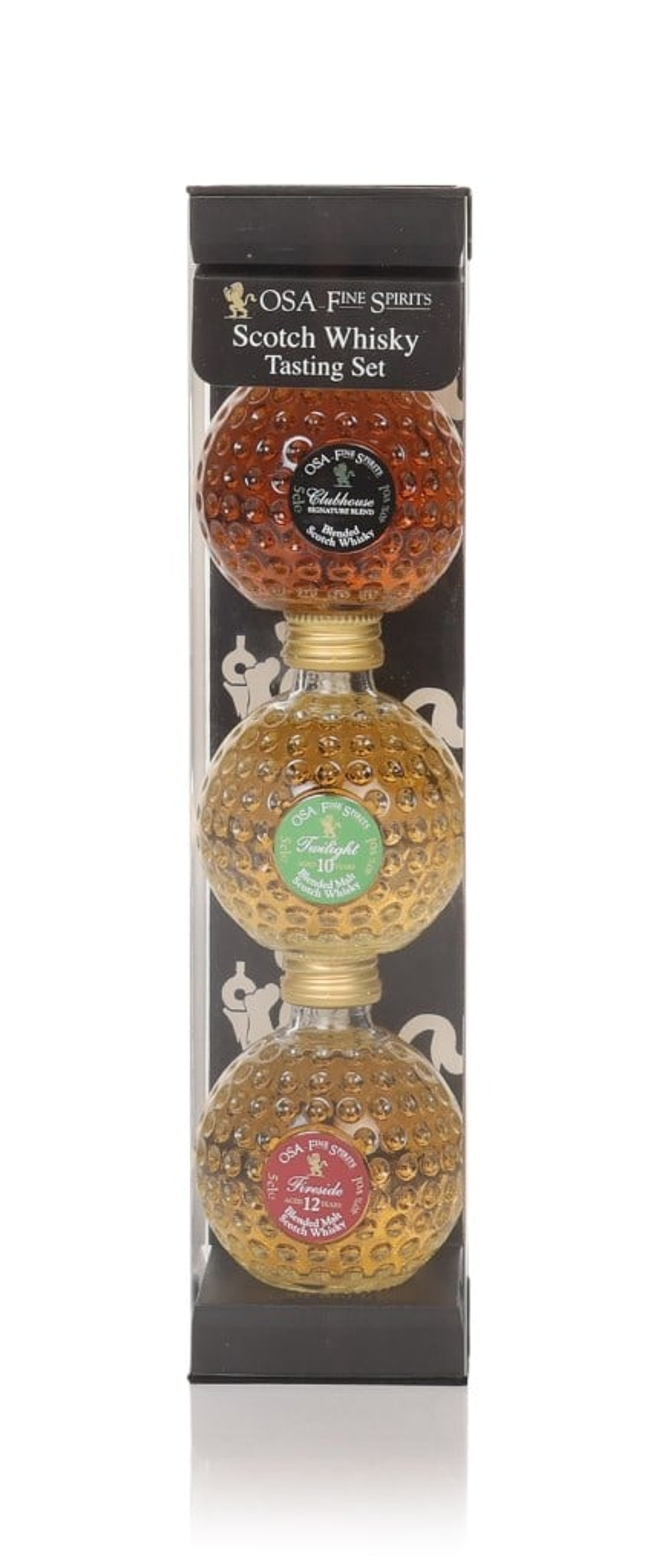 A charming tasting set from OSA Fine Spirits! A great way to sample its range of whiskies – this set includes a 50ml bottle each of the classic Clubhouse Blended Scotch Whisky, the tantalising Twilight 10 Year Old Blended Malt Scotch Whisky and the fabulous Fireside 12 Year Old Blended Malt Scotch Whisky.
