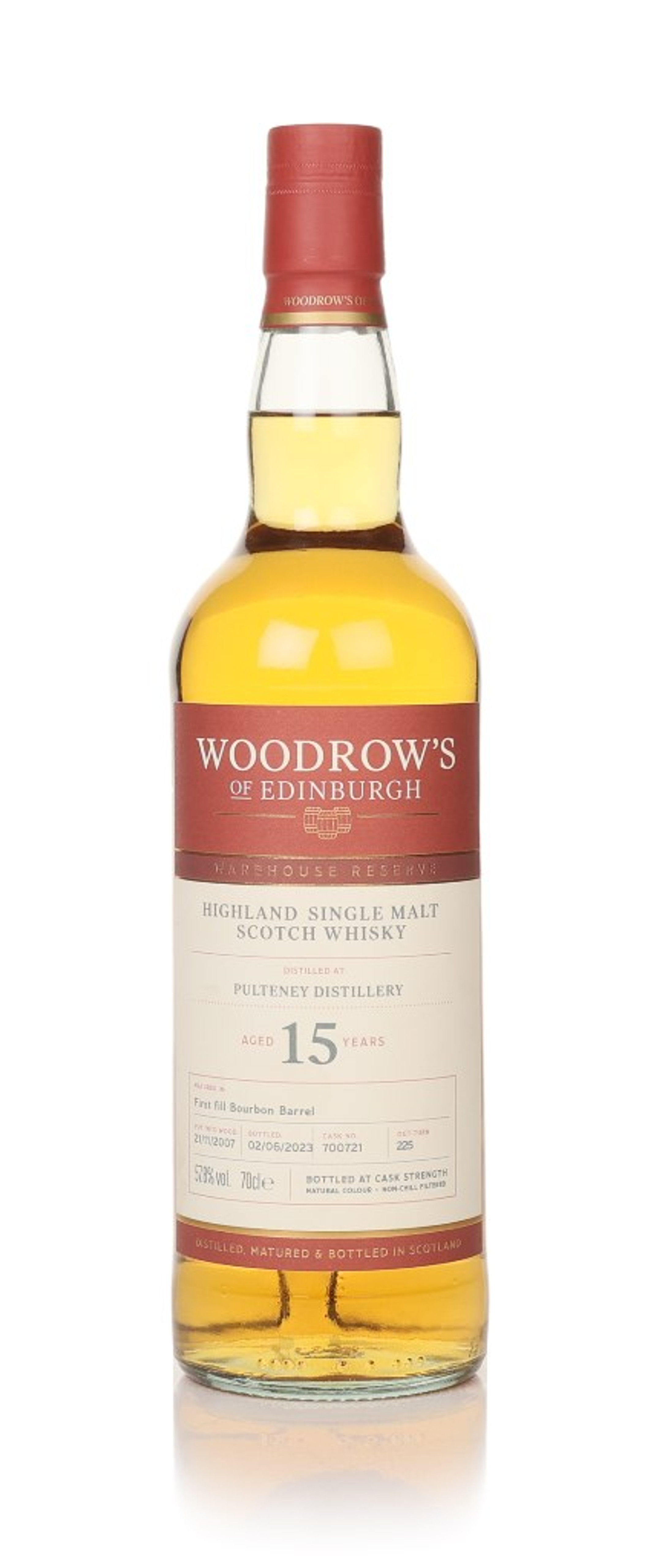 From Woodrow's of Edinburgh comes a single malt made at Pulteney Distillery back in November 2007. The Scotch was aged for 15 years in a first-fill bourbon barrel at the Highland distillery before it was bottled with natural colour and without chill filtration in June 2023 at 57.8% ABV.