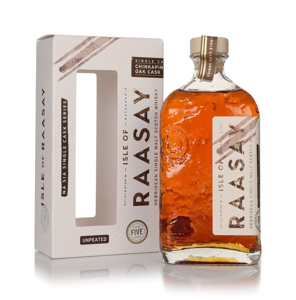This single malt from the Raasay distillery joins the first instalment of its Na Sia Through the Ages Series. The collection breaks down the unique six-cask recipe used by the distillery to create its classic Isle of Raasay Single Malt – in which peated and unpeated spirit are matured separately in a selection of American rye, chinkapin oak, and Bordeaux red wine casks before blending. With Na Sia, we get to try each of these six parts individually! Here we have a five-year-old unpeated single malt, matured in a chinkapin oak cask and bottled at cask strength.