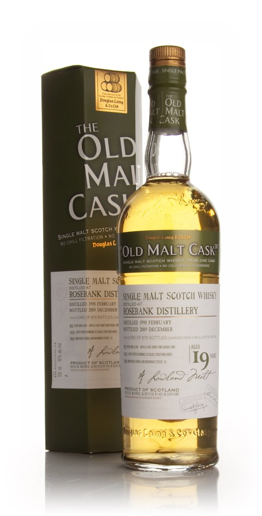 This 19 year old Rosebank was bottled under Douglas Laing's cracking Old Malt Cask range. Each whisky is bottled at their preferred bottling strength of 50%, usually from single casks. This was distilled in the Lowlands in February 1990, aged in a single refill butt and bottled as 670 bottles in December 2009.