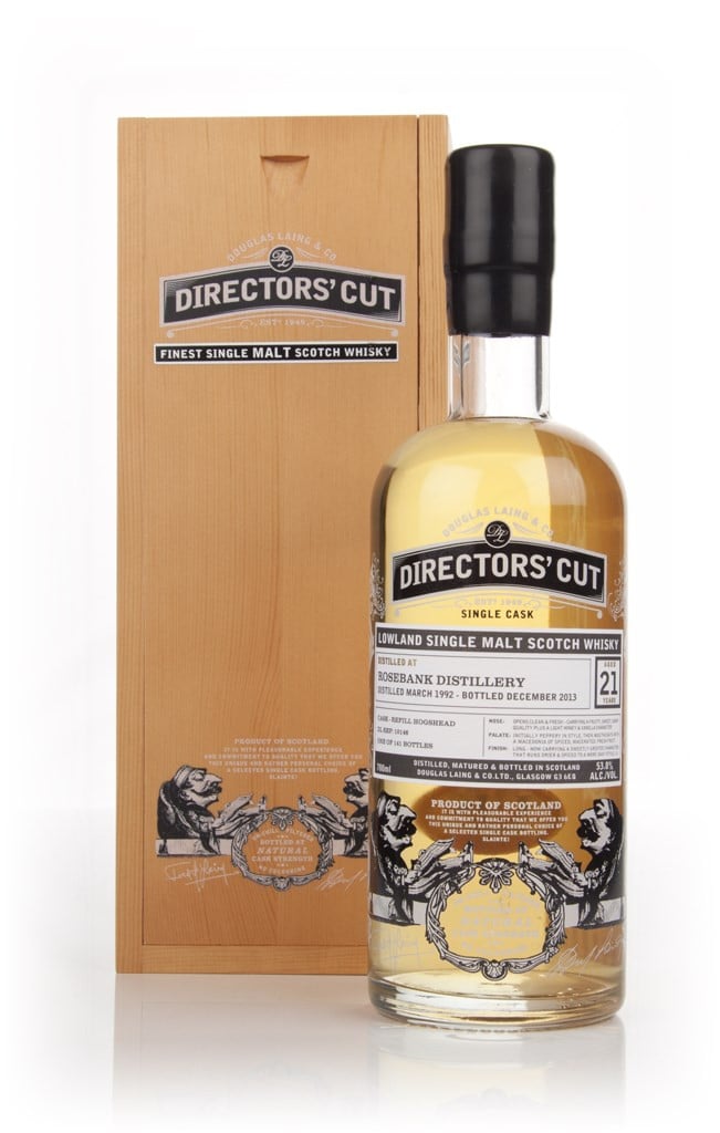Douglas Laing's Directors' Cut range contains selected old and rare whiskies, and this is no certainly no exception. Rosebank distillery in the Lowlands of Scotland was mothballed in 1993 and never recommenced production. Since 2010, this has been even less likely, as a load of the equipment was unfortunately nicked. Sad face. Thanks to bottlings like this, however, the liquid lives on. It won't last forever, but we'll sure enjoy it for as long it does! The outturn of this cask was 141 bottles.
