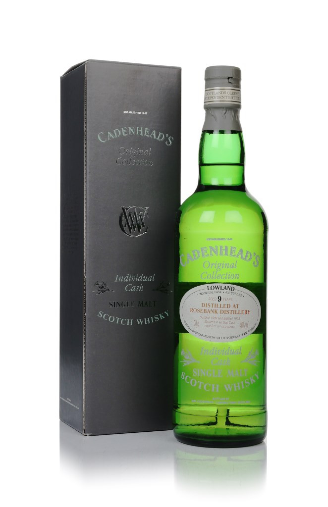 A rather rare bottle of Rosebank single malt, distilled in 1989 and matured for nine years in a single cask. In 1998, the cask was cracked open by independent bottler W.M. Cadenhead, releasing a total outturn of 432 bottles. A great chance to own a bottle of this legendary Lowlander.