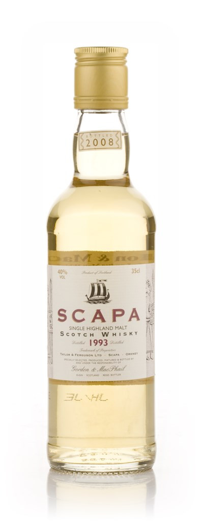 A half bottle of 11 year old, refill sherry matured Scapa, distilled in 1993 and bottled in 2004.