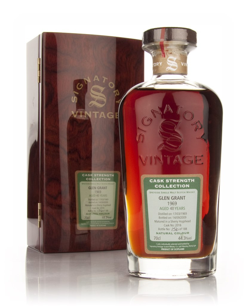 A beautifully dark whisky bottled by Signatory. This was distilled on the 17th March 1969 and matured for 40 years in a single cask, a fresh Oloroso sherry hogshead number 2016. This was bottled at cask strength on the 14th September 2009. There are just 188 bottles of this!