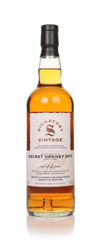 This single malt Scotch whisky from an undisclosed distillery on Orkney is 100 Proof Edition #15, a fine addition to an excellent range from Signatory Vintage. Like every whisky in this series, it's presented at 57.1% ABV (or 100 proof) without colouring or chill-filtration. It was also matured in first-fill casks – oloroso sherry butts and bourbon hogsheads in this case.