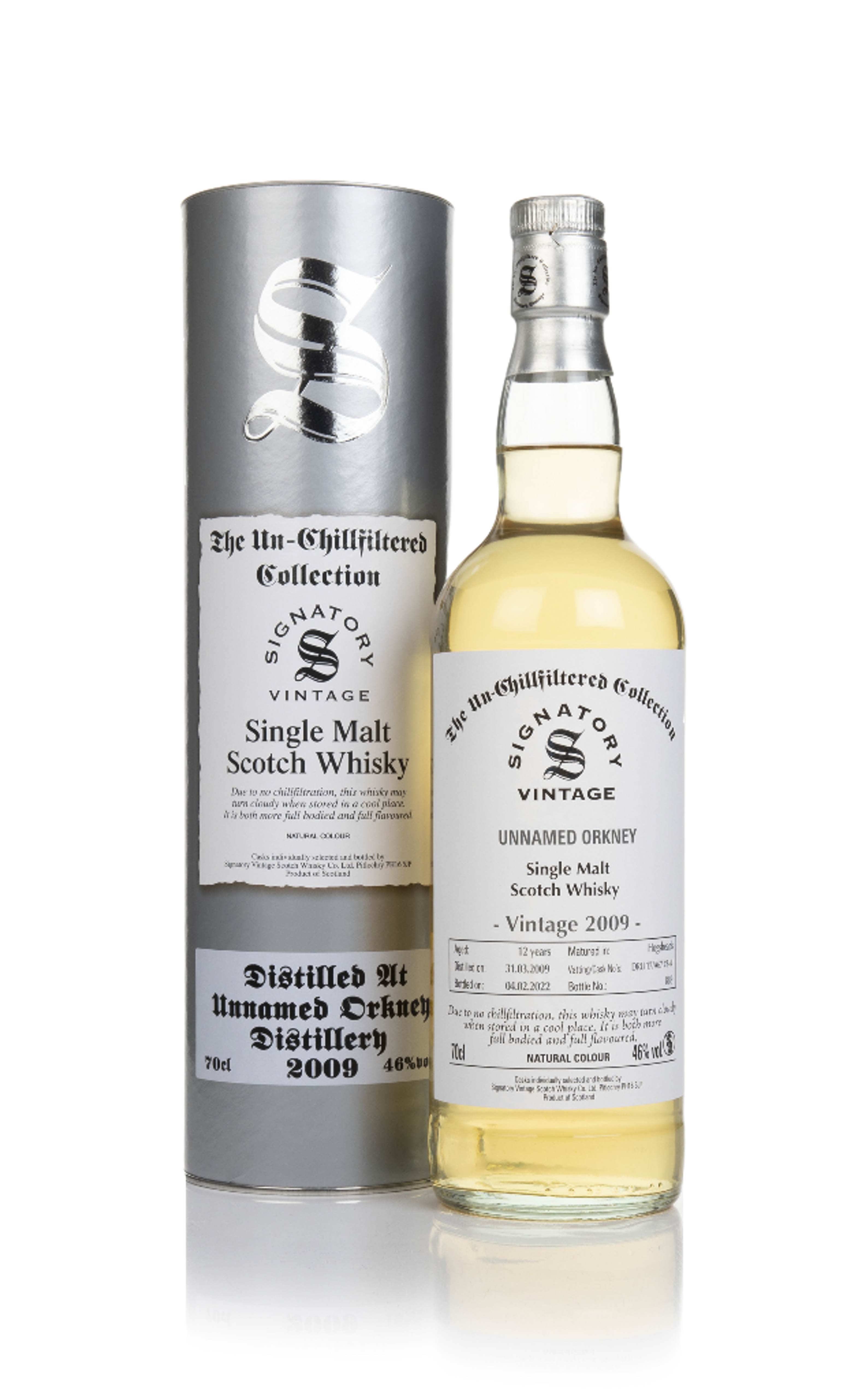 Mystery whisky from the island of Orkney! This marvellous expression was distilled in March 2009 and rested in hogshead casks for 12 years. In February 2022, the casks were opened up by the folks at indie bottler Signatory, who bottled the single malt up without any chill-filtration, because this joins the tremendous Un-Chillfiltered Collection. Although the name of the distillery is undisclosed, with so few on Orkney, whisky Columbos should have fun taking a guess at which one made this after giving this a taste.
