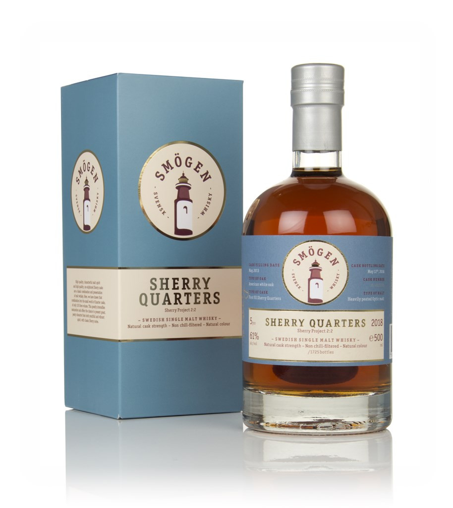5 year old Swedish single malt from the Smögen distillery, released as part of the Sherry Project series. This particular expression is Sherry Project 2:2, and was matured in first-fill sherry quarter casks, which are smaller than your run-of-the-mill casks, meaning more surface area for interaction between the wood and whisky. 1,725 bottles were produced.