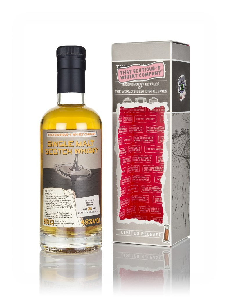 26 year old single malt from the Speyside distillery, independently bottled by That Boutique-y Whisky Company. The Speyside distillery resides in the Speyside region, and produced Speyside whisky - Speyside whisky from Speyside in Speyside. At some point, if you repeat a word enough, it begins to lose all meaning and just sounds like a bunch of syllables mashed together. Speyside is that now.