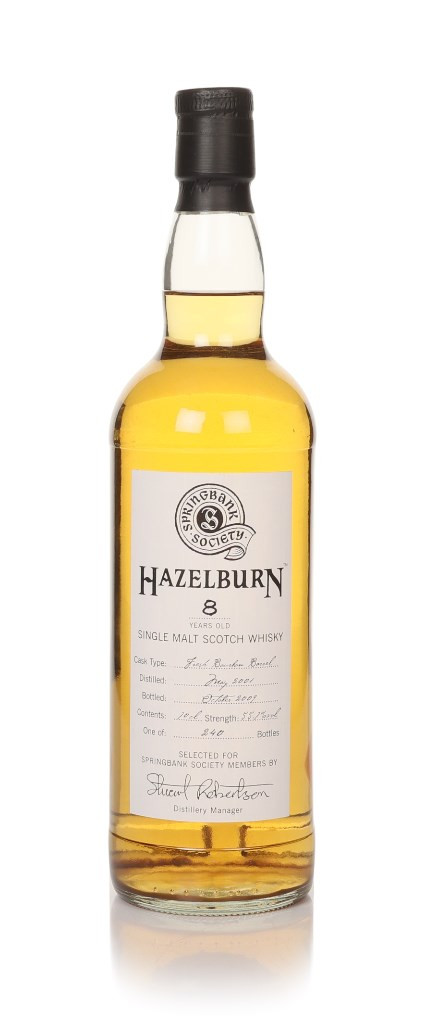 Distilled in 2001, this Hazelburn matured in a fresh bourbon barrel for eight years. It was released exclusively to Springbank Society members in 2009, with only 240 bottles of this single malt Scotch whisky produced.