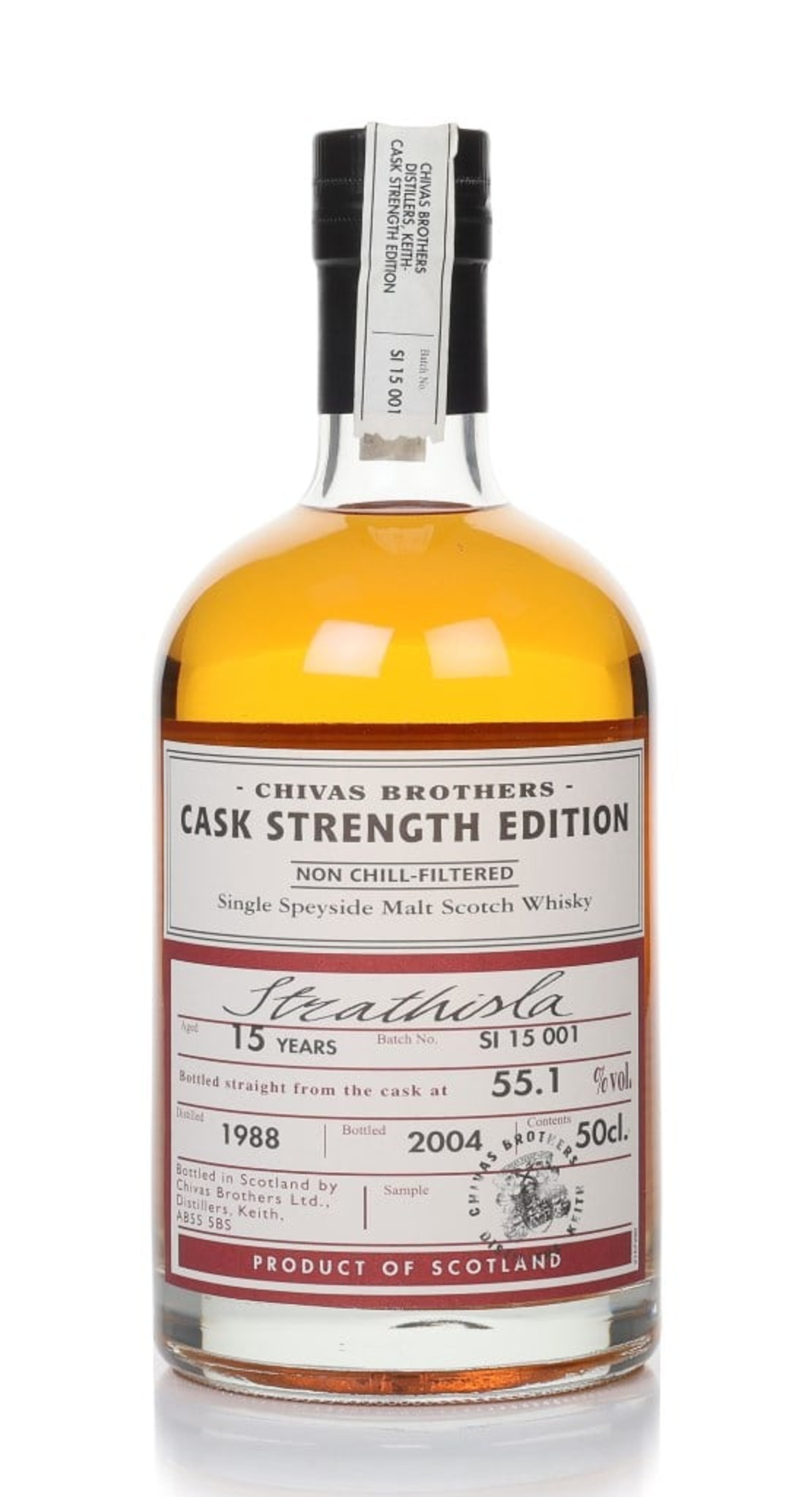 Part of the Chivas Brothers Cask Strength Edition series, this non-chill filtered single malt Scotch whisky was distilled at Strathisla all the way back in 1988. It matured for a generous 15 years before being bottled in 2004, straight from the cask, at a robust 55.1% ABV. Expect generous helpings of fruity, nutty, Speyside character from this special dram.