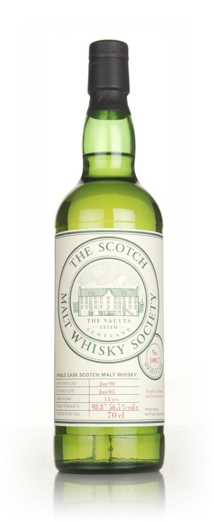 A 13 year old single malt from Strathmill distillery, bottled by the Scotch Malt Whisky Society. The brief descriptor given to this one on the label is "Artificial lemon and hard pears". It was distilled in June 1990 and left to age for a baker's dozen years until being bottled in June 2003.