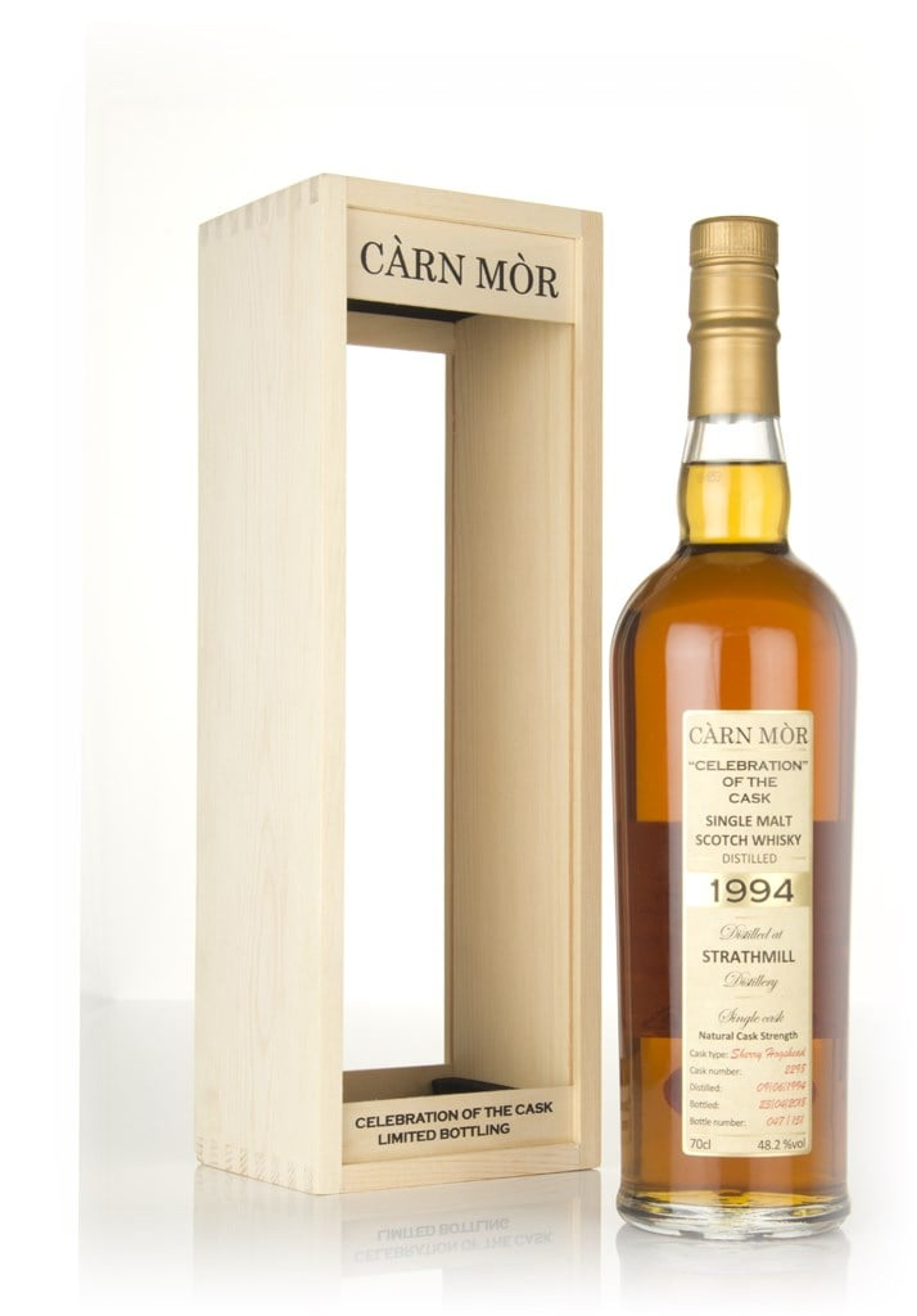 23 year old single malt from Strathmill, independently bottled by Càrn Mòr as part of the Celebration of the Cask range. This whisky was distilled in June 1994 and allowed to mature in a sherry hogshead until April 2018, when it was bottled with an outturn of 151 bottles.