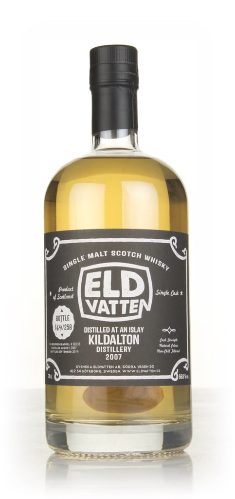 Mysterious single malt from Islay, independently bottled by Sweden's Svenska Eldvatten. This was distilled by an undisclosed distillery on the Kildalton Coast of Islay in August 2007, matured in an ex-bourbon barrel and bottled 7 years later on September 2014, with an outturn of 258 cask-strength bottles.