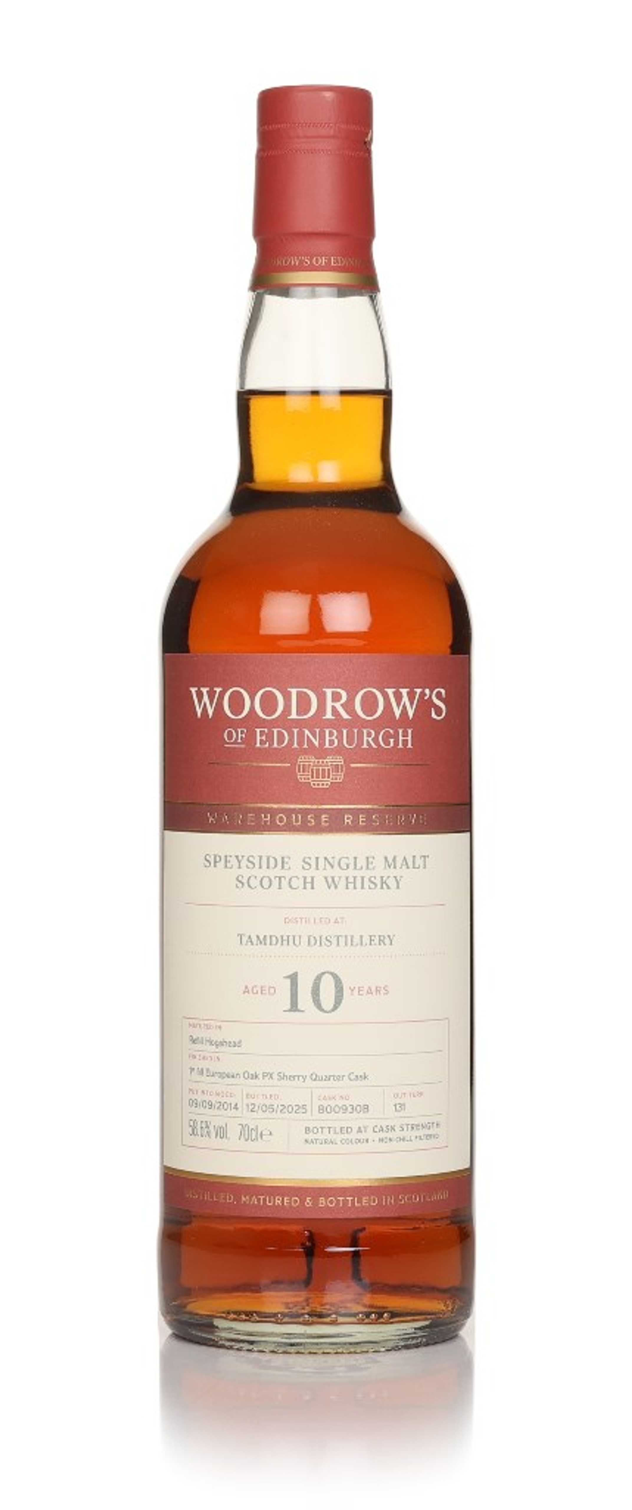 This 10-year-old Tamdhu is brought to us by independent bottler Woodrow's of Edinburgh. Distilled in 2014, the single malt began its maturation in a refill hogshead before finishing in a first-fill European oak Pedro Ximénez quarter cask, yielding just 131 cask strength bottles when it was opened in 2025.