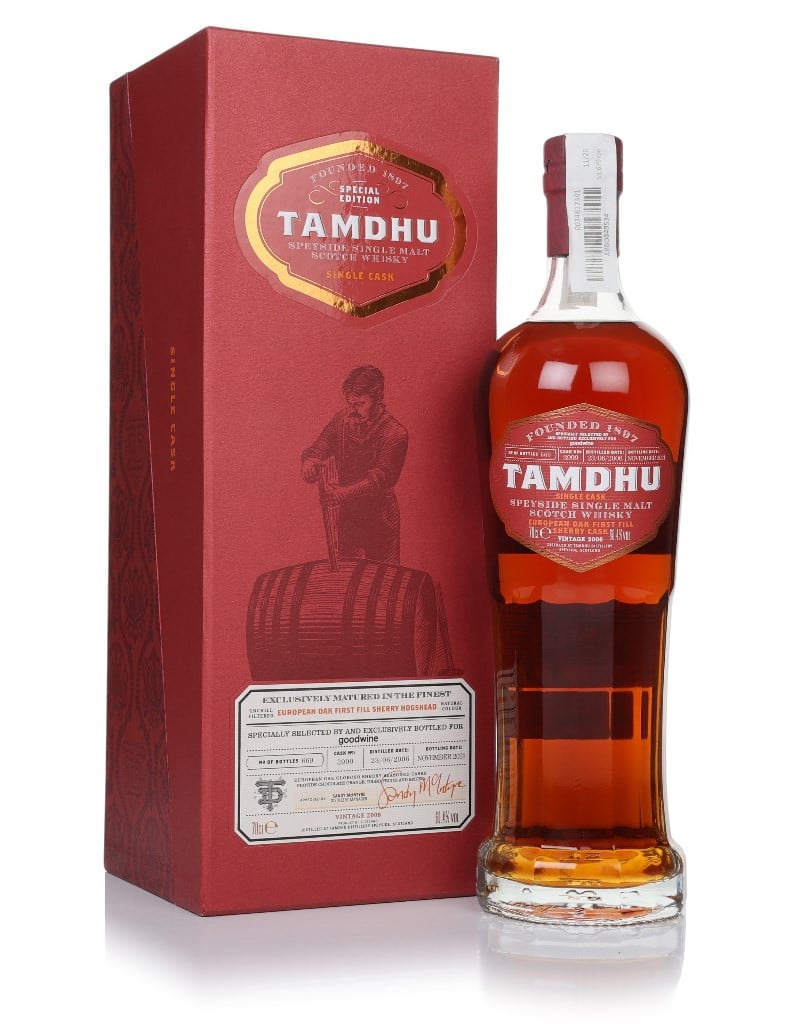 A single cask Tamdhu, distilled on 23 June 2006 and laid to rest in single first-fill sherry cask, in classic Tamdhu style. It was bottled at a burly 60.4% ABV in November 2021 for Goodwine, in a release of 669 bottles – but now we've got our lucky hands on it! Sure to be decadent stuff.