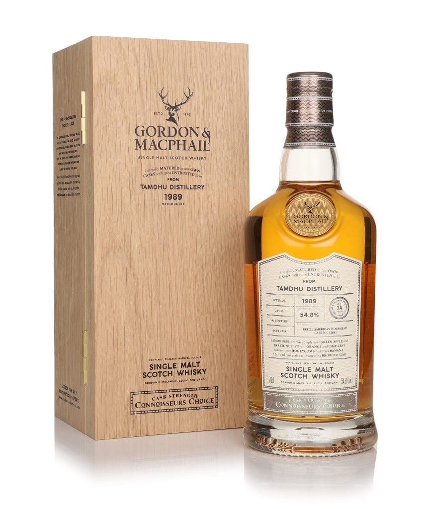This single malt from Tamdhu is brought to us by independent bottler Gordon & MacPhail. Distilled in 1989, the whisky spent a mighty 34 years maturing in a single refill American hogshead, yielding just 95 cask strength bottles for the Connoisseurs Choice collection.