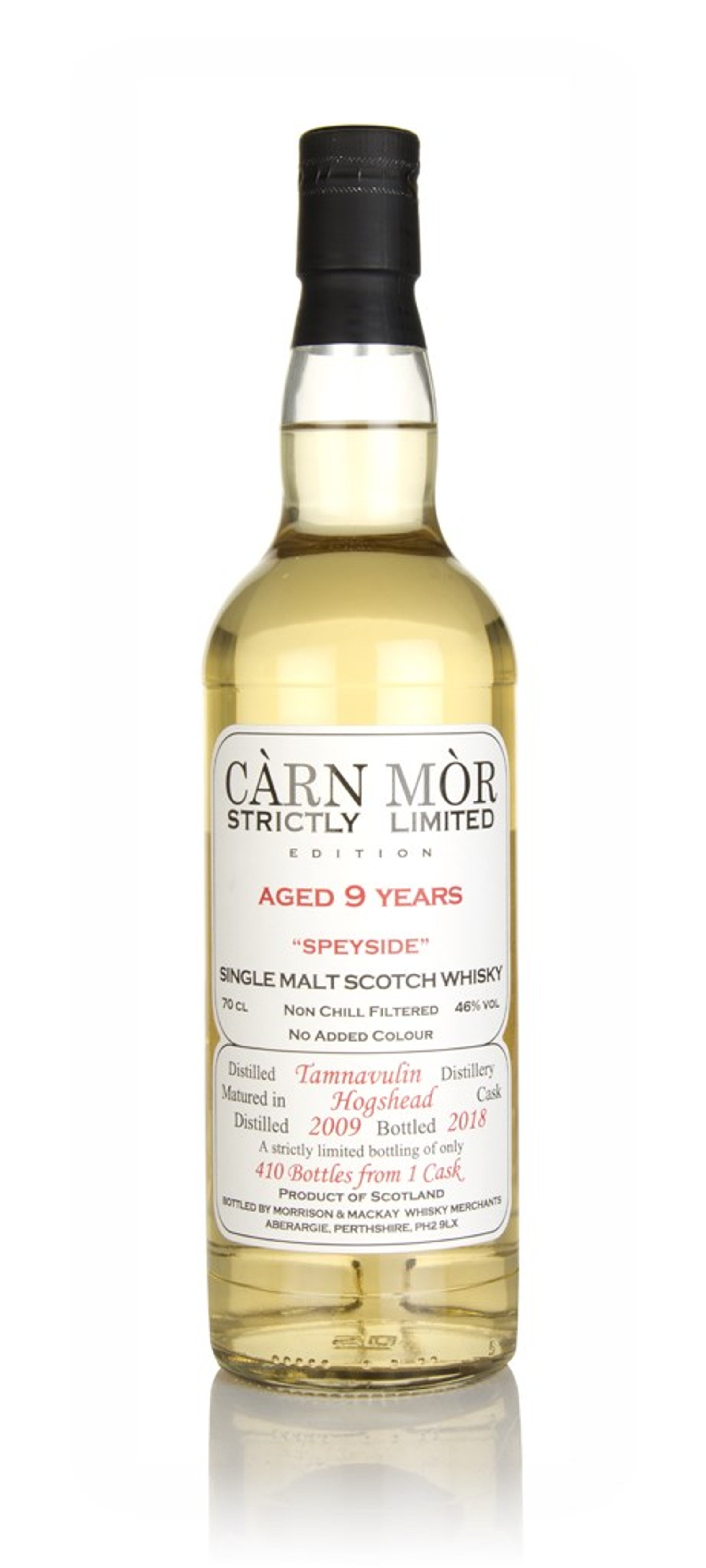 A 9 year old single malt from Tamnavulin, independently bottled for the Strictly Limited range by Càrn Mòr. The whisky was filled into a single hogshead cask back in 2009, and emptied in 2018, resulting in 410 bottles.