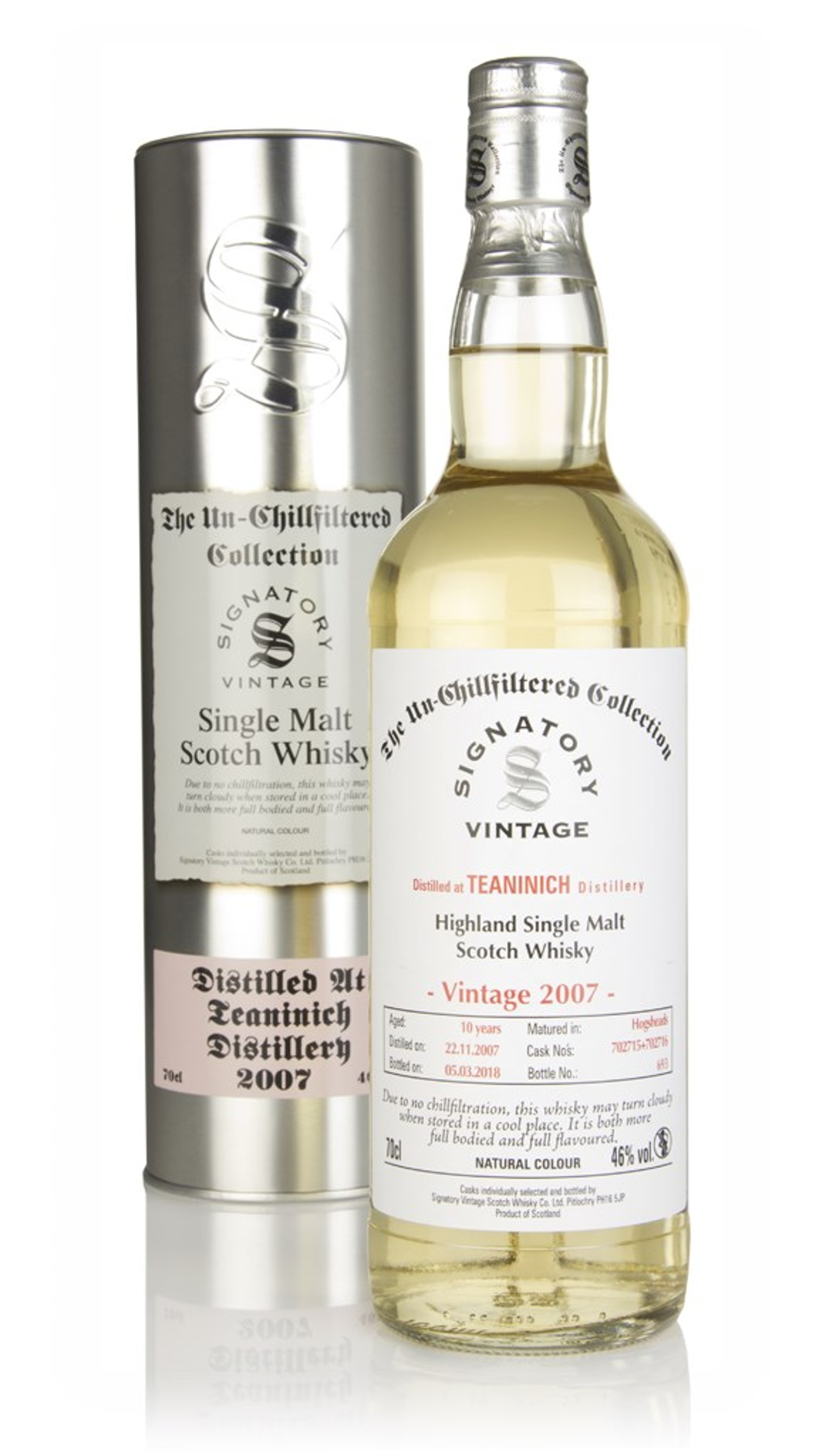 This is an independent bottling of 10 year old single malt from the Teaninich distillery, drawn from a pair of hogshead casks. It was distilled in November 2007 and bottled in March 2018 by Signatory without any chill-filtration or additional colours.