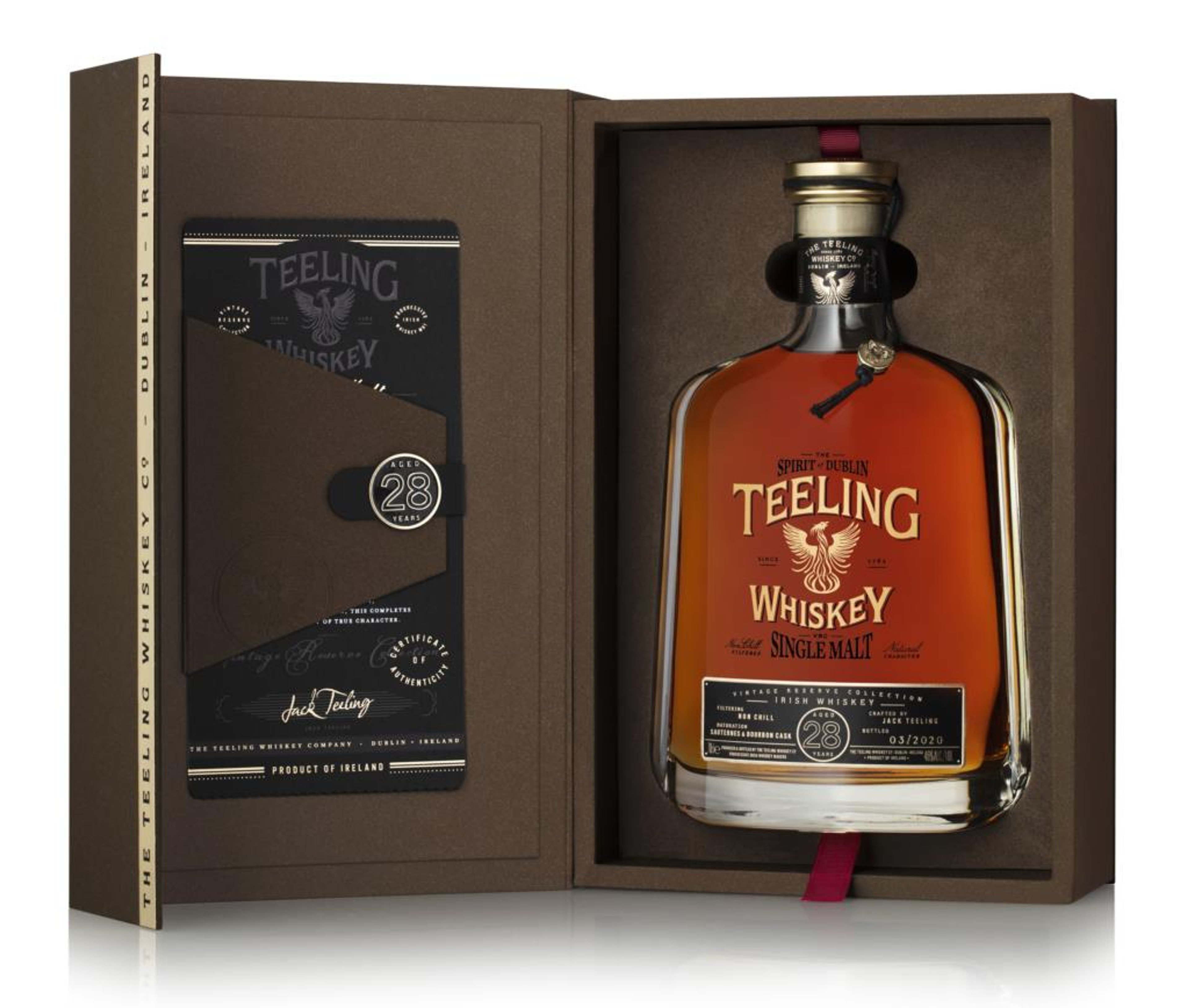 Another superbly well-aged Irish whiskey from Teeling's Vintage Reserve Collection! Following on from the 24 year old expression winning World's Best Single Malt at the World Whiskies Awards 2019, this extraordinary whiskey is a 28 year old Irish single malt initially matured in Bourbon casks before being moved over to Sauternes wine casks to marry. A release of 4,000 bottles.