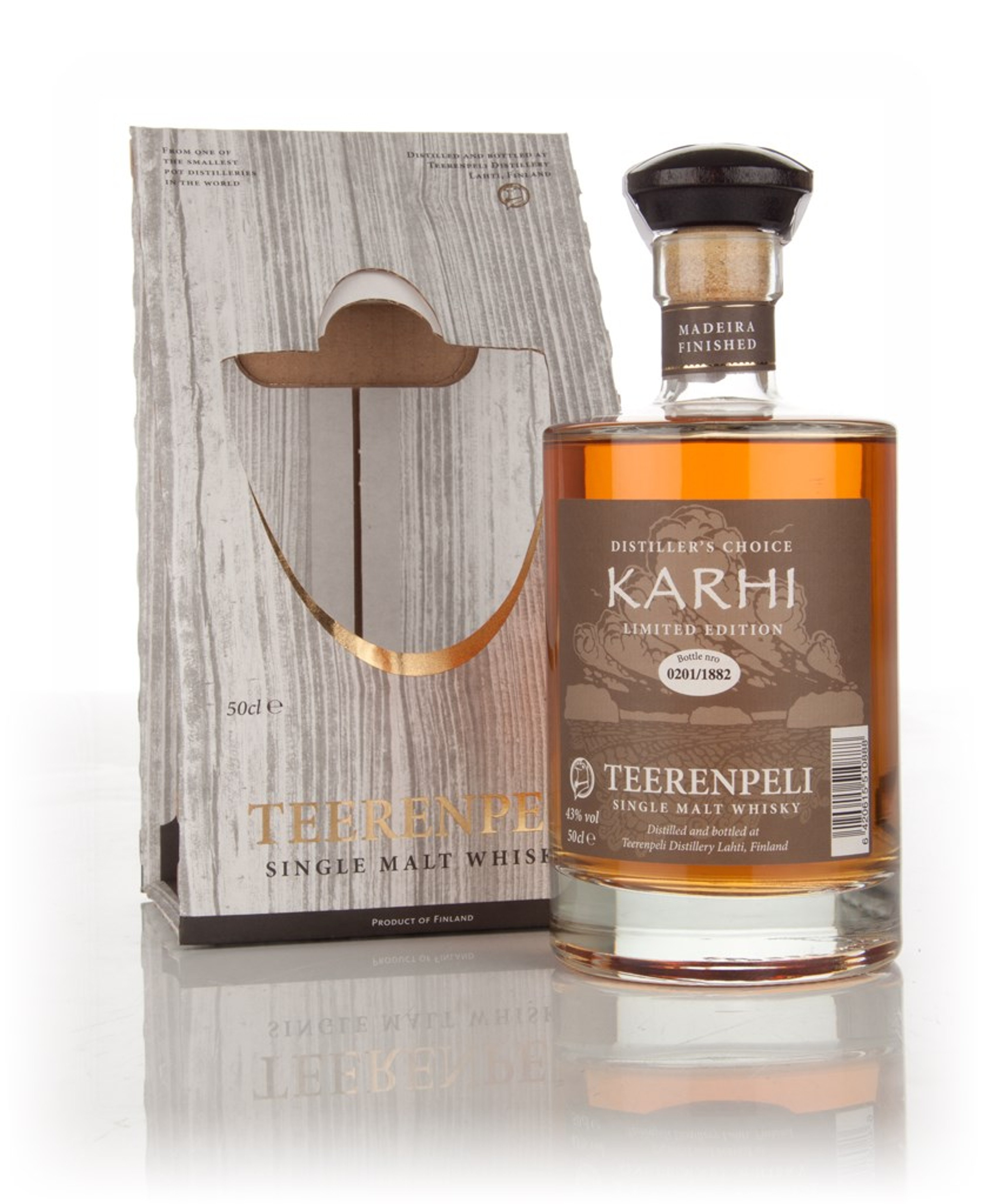 Teerenpeli's Karhi single malt whisky is initially matured in bourbon casks before being allowed to age for a year in Madeira wine casks. This imparts a subtle, chocolatey sweetness to the Finnish single malt... Yum...