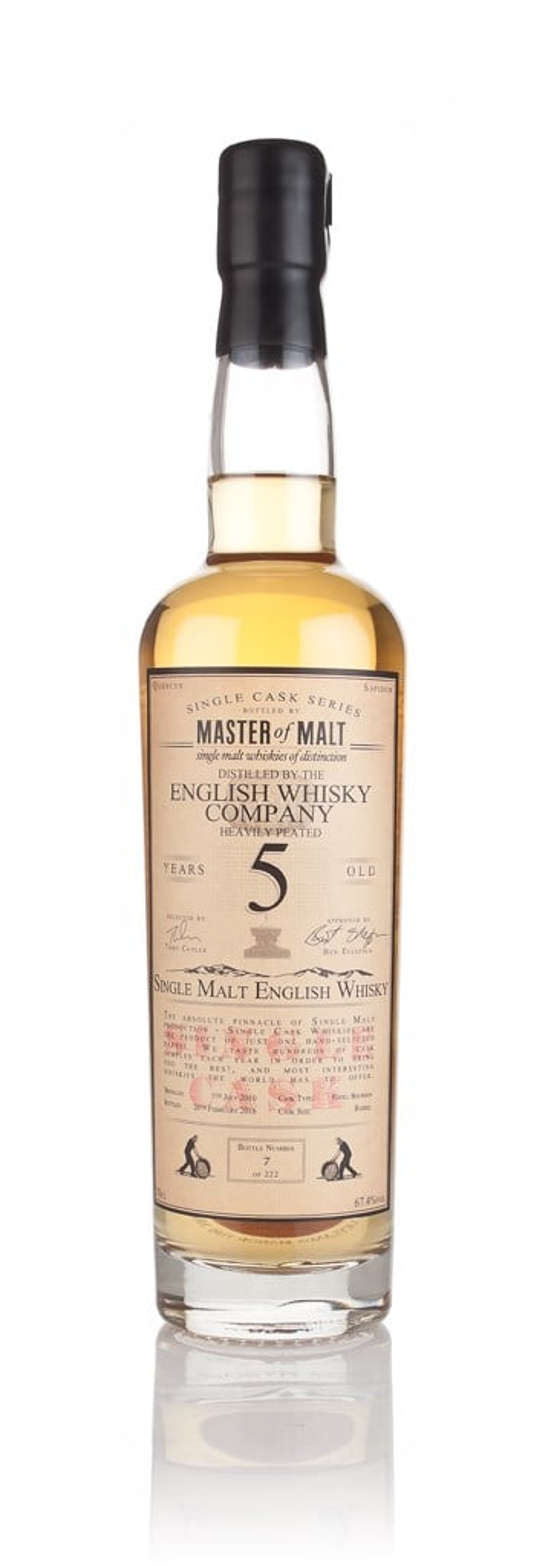 A heavily peated single malt whisky here from the English Whisky Company, bottled some time ago as part of the Master of Malt Single Cask Series! This five-year-old English whisky was distilled in July 2010, matured in a bourbon cask and bottled in February 2016.