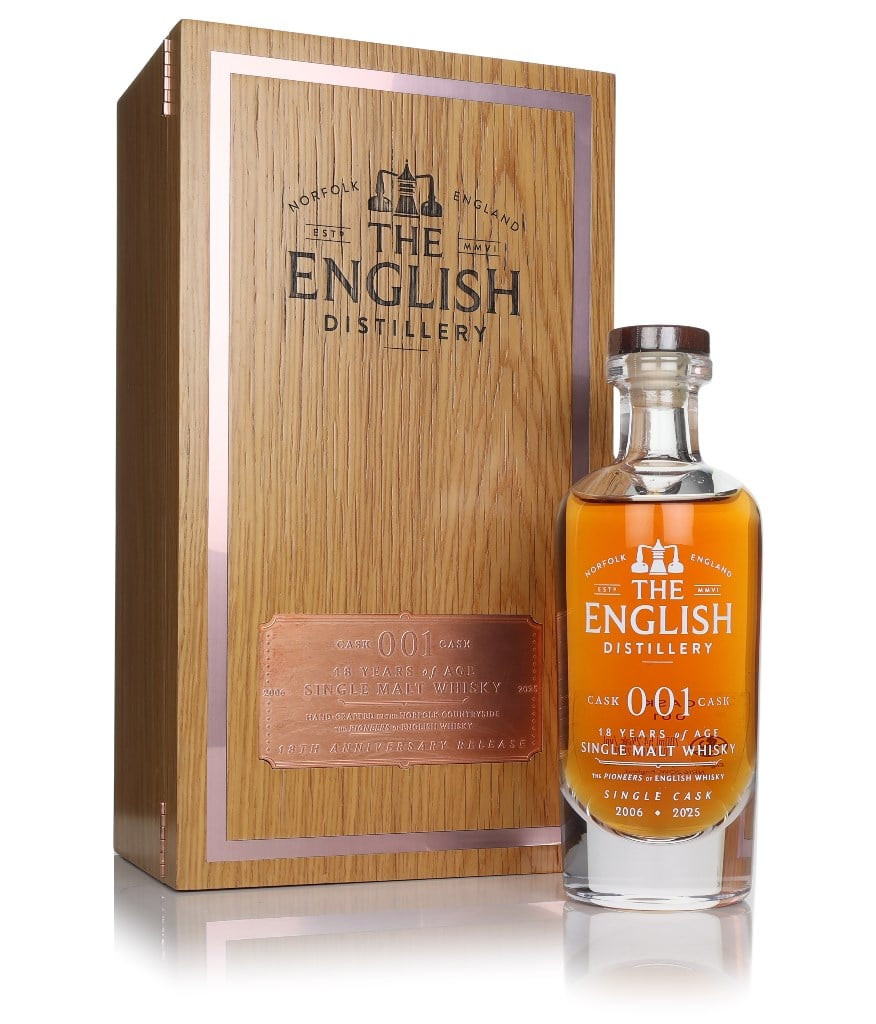 The English - Cask 001 is an extremely rare English single malt, released to commemorate the English Distillery's founding. In 2006, this whisky was the first of only 29 casks hand-filled by founder James Nelstrop. Not only is it whisky from the inaugural production, but it also marks the first cask produced by a licensed whisky distillery in England in over a century.