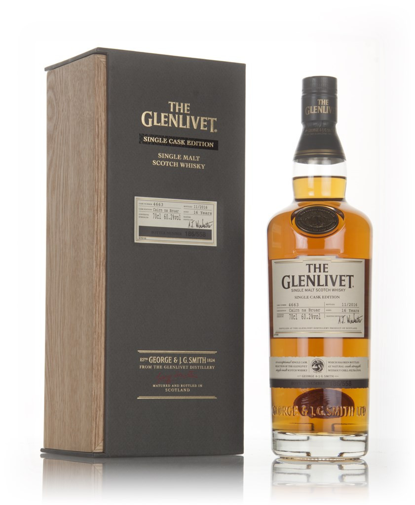 This is a single cask bottling of single malt from Speyside's Glenlivet distillery, bottled in November 2016 with an outturn of 558 bottles (originally released for the German market). This was bestowed the name Cairn na Bruar, taken from a Scottish hill which served as a landmark on smuggling routes back in the day.