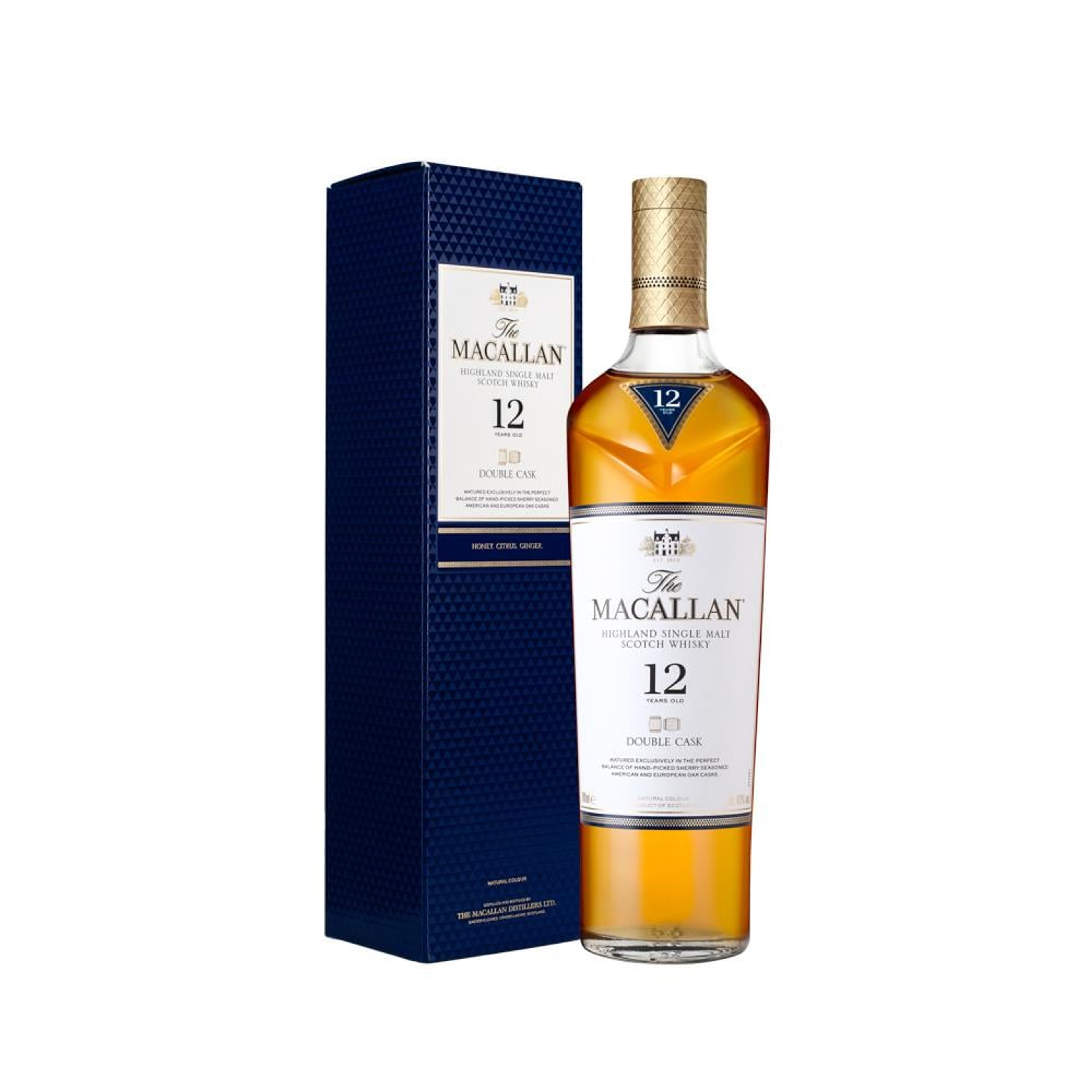 A rich and well-balanced single malt from The Macallan, aged for 12 years in a mix of American and European Sherry oak casks. This maturation adds layers of vanilla, spice, and dried fruit, creating a classic Speyside whisky.