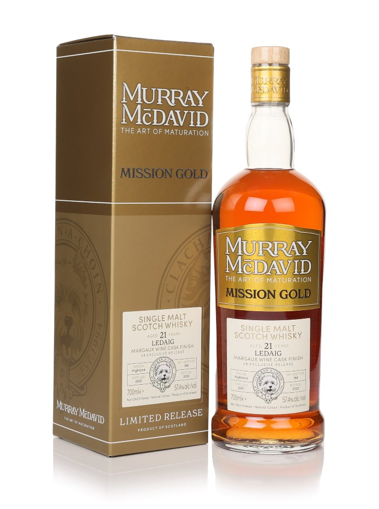 Joining the Mission Gold collection from independent bottler Murray McDavid, a magnificent Ledaig single malt from Tobermory. Distilled in 2001, the peated spirit matured for 21 years, including a finish in a Margaux Wine cask before being bottled up in 2022, without added colour or chill filtration, at a hearty 57.4% ABV. A release of 186 bottles.