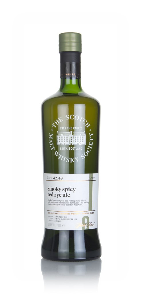 A single cask Tobermory, aged for 9 years in a single cask then bottled by the Scotch Malt Whisky Society. This one was given the name Smoky Spicy Red Rye Ale as a hint to its flavour profile. 302 bottles were produced.