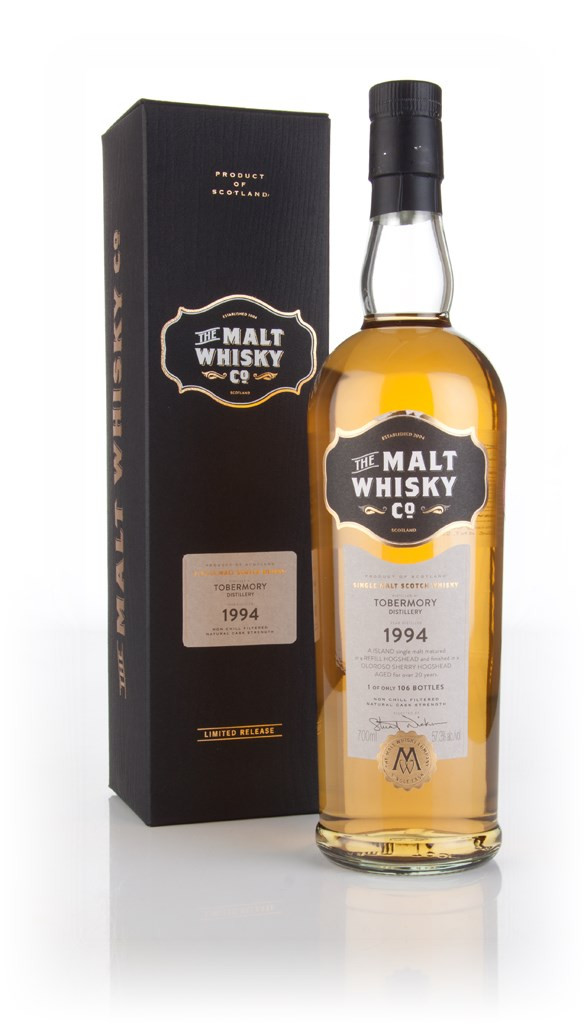 This single cask Tobermory was initially matured in a refill hogshead before being moved to an Oloroso Sherry cask for a finishing period. It was bottled by Stuart Nickerson's The Malt Whisky Co.