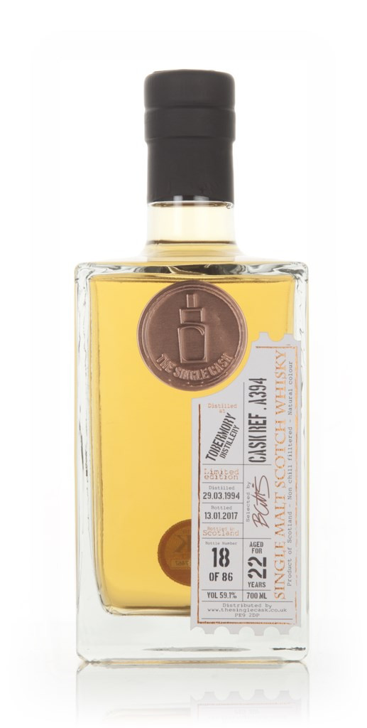 22 year old Island single malt from the Tobermory distillery, independently bottled by The Single Cask. It was distilled on the Isle of Mull in March 1994 and bottled in January 2017 with an outturn of 86 bottles.