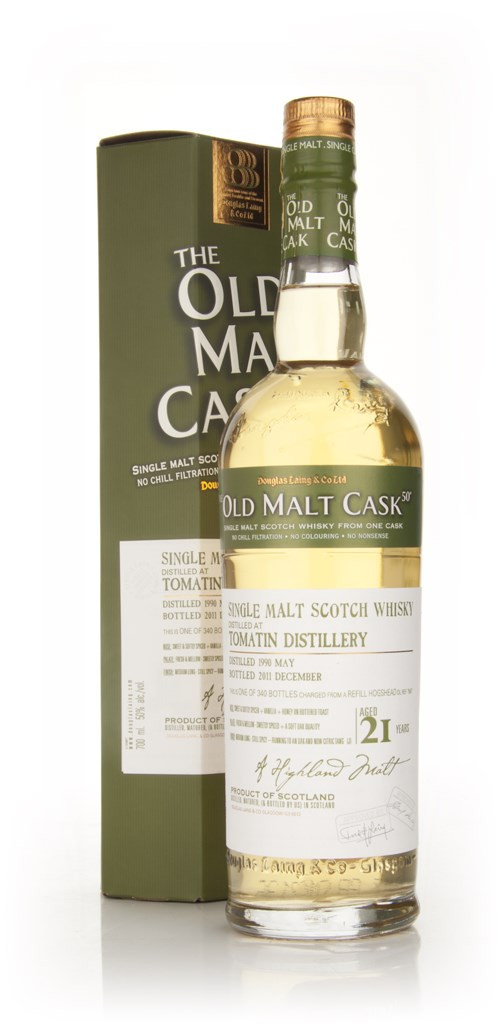 A sweet, buttery Tomatin, distilled in May of 1990, and aged in a refill hogshead for 21 years before bottling in December of 2011. A release of 340 bottles from the Old Malt Cask range.