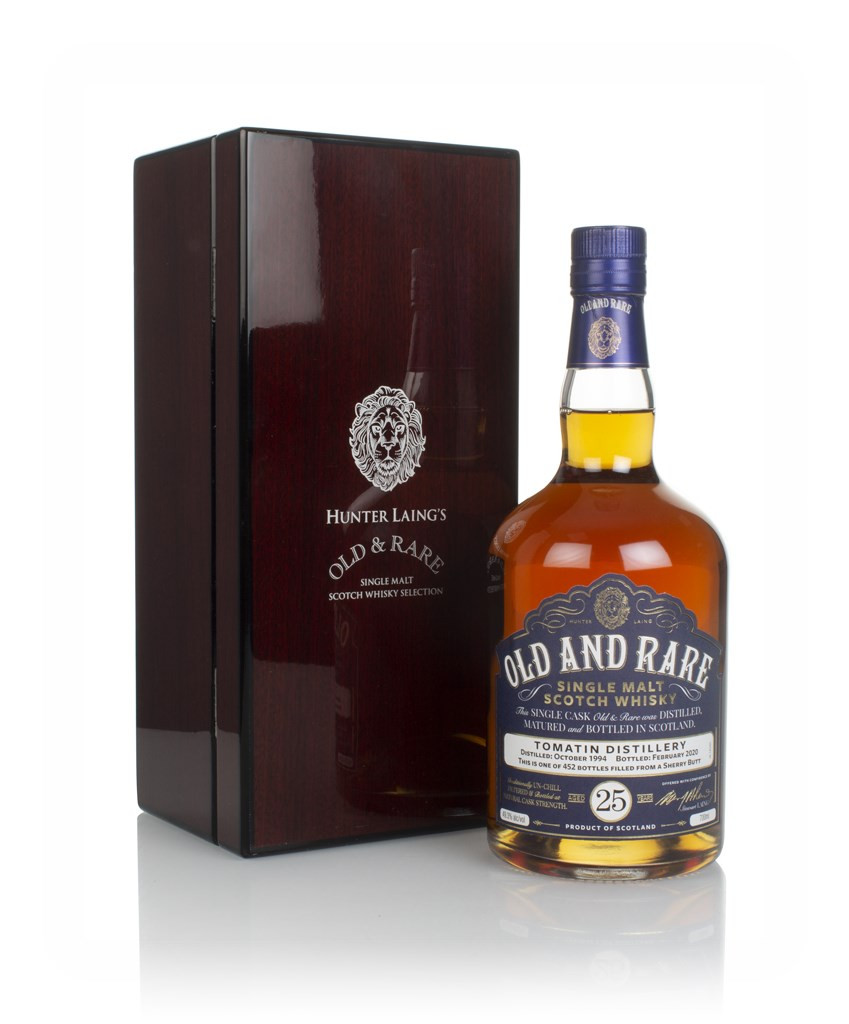 25 year old Tomatin single malt, independently bottled by those HUnter Laing folks. This one was aged in a single sherry butt from October 1994 to February 2020, before being bottled up as part of the Old & Rare series with an outturn of 452 bottles.