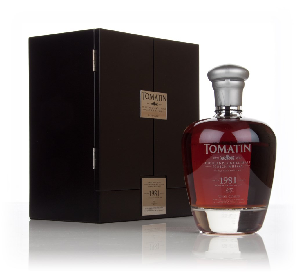 Single cask Tomatin single malt Scotch whisky, taken from Oloroso Sherry Butt #001. That's right, #001! It was filled in 1981 and matured for 32 years before being bottled in May 2014 with no chill-filtration. Presented in a classy bottle alongside a handsome presentation case, this release is very attractive indeed. After the angels had their share of well-Sherried Highland whisky, 405 bottles were produced.