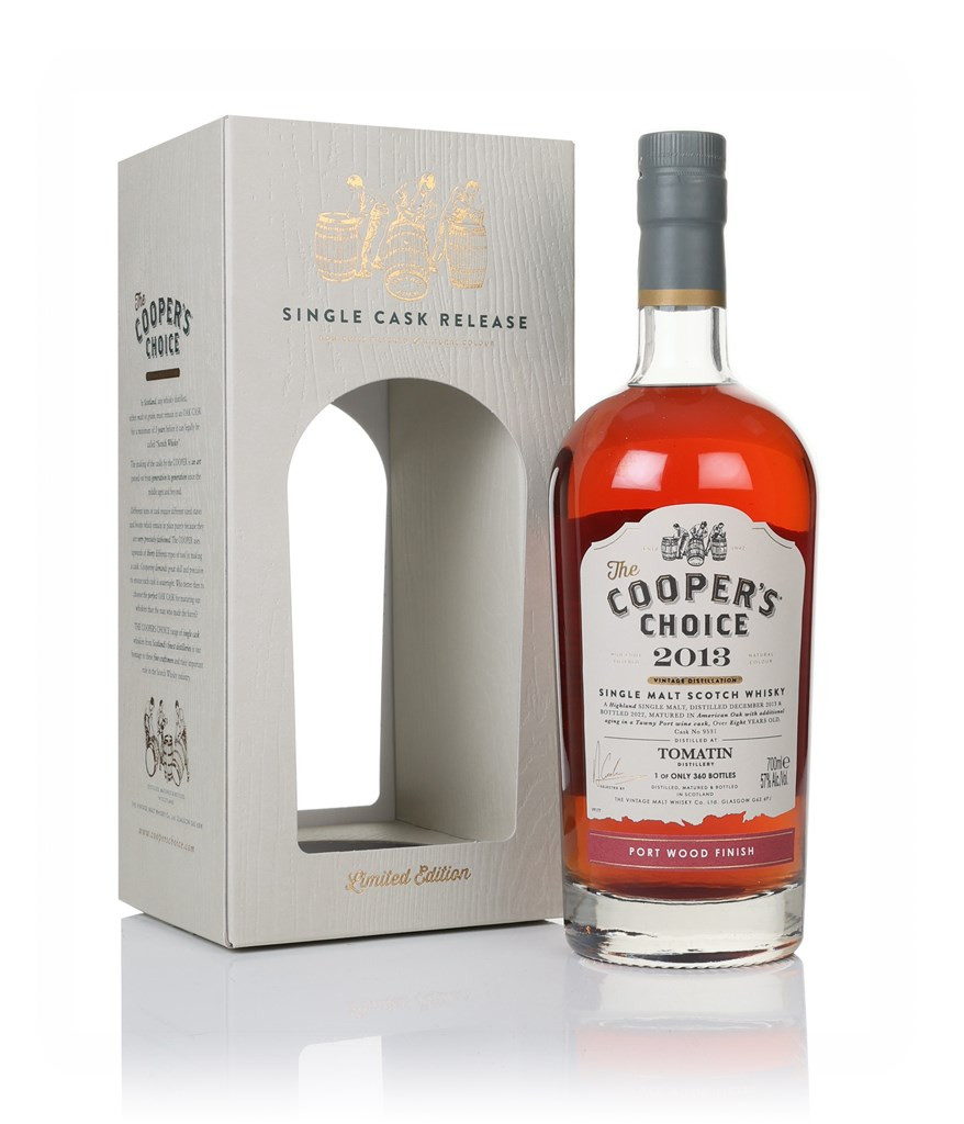 Take a look at this Tomatin single malt! Distilled in 2013 and matured for eight years, initially in American oak it was then treated to a finishing period in a tawny Port cask, which you might have guessed from the wonderfully rich ruby hue that the liquid has taken on. In 2022, the gang at indie bottler The Vintage Malt Whisky Co. opened up the cask, releasing a total of 360 bottles for The Cooper's Choice series.