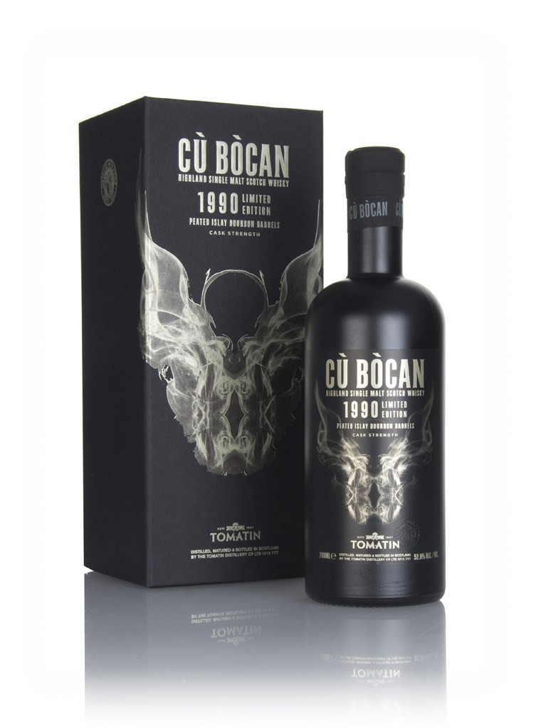 A 1990 vintage single malt from the Tomatin distillery, released as part of its Cù Bòcan series - named for a ghostly hound in the highlands. These releases are smoky expressions, making a change from Tomatin's usual unpeated whiskies. However, the distillery has only been doing short bursts of peated whisky distilling since 2005 - how have they got subtly smoky whisky distilled back in 1990?! Well, this expression is drawn from casks that previously held heavily peated Islay whisky, imparting wafts of smoke to the spirit. Fascinating stuff for sure. 1,400 bottles were produced.